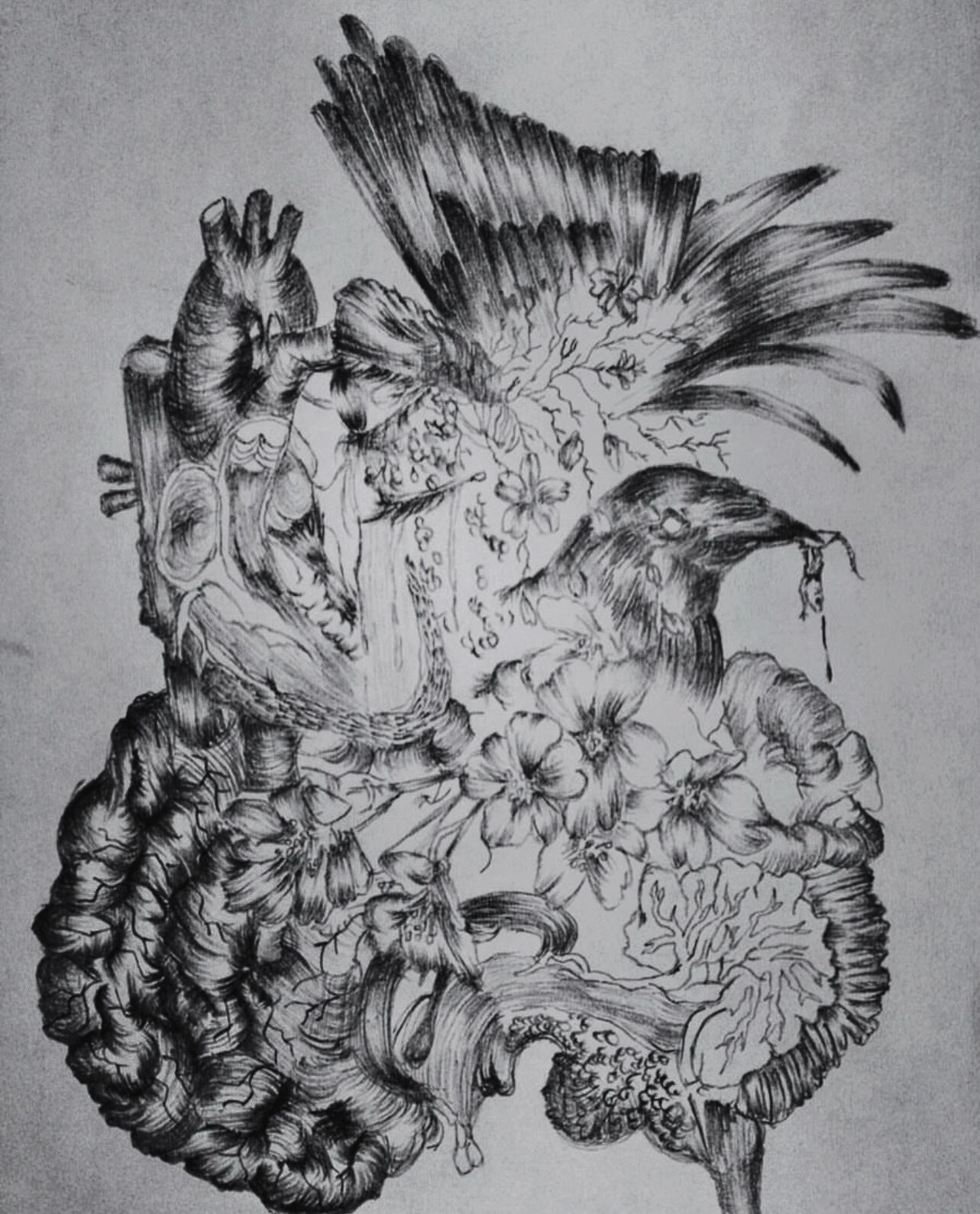 ◾︎原画 ◾︎解説 人間に囚われた虎はもう二度と花に触れることも出来ない。鮮やかに咲き続ける花を対照に、色彩を奪われた虎を描きました。 ◾︎size F2 ◾︎額装 有