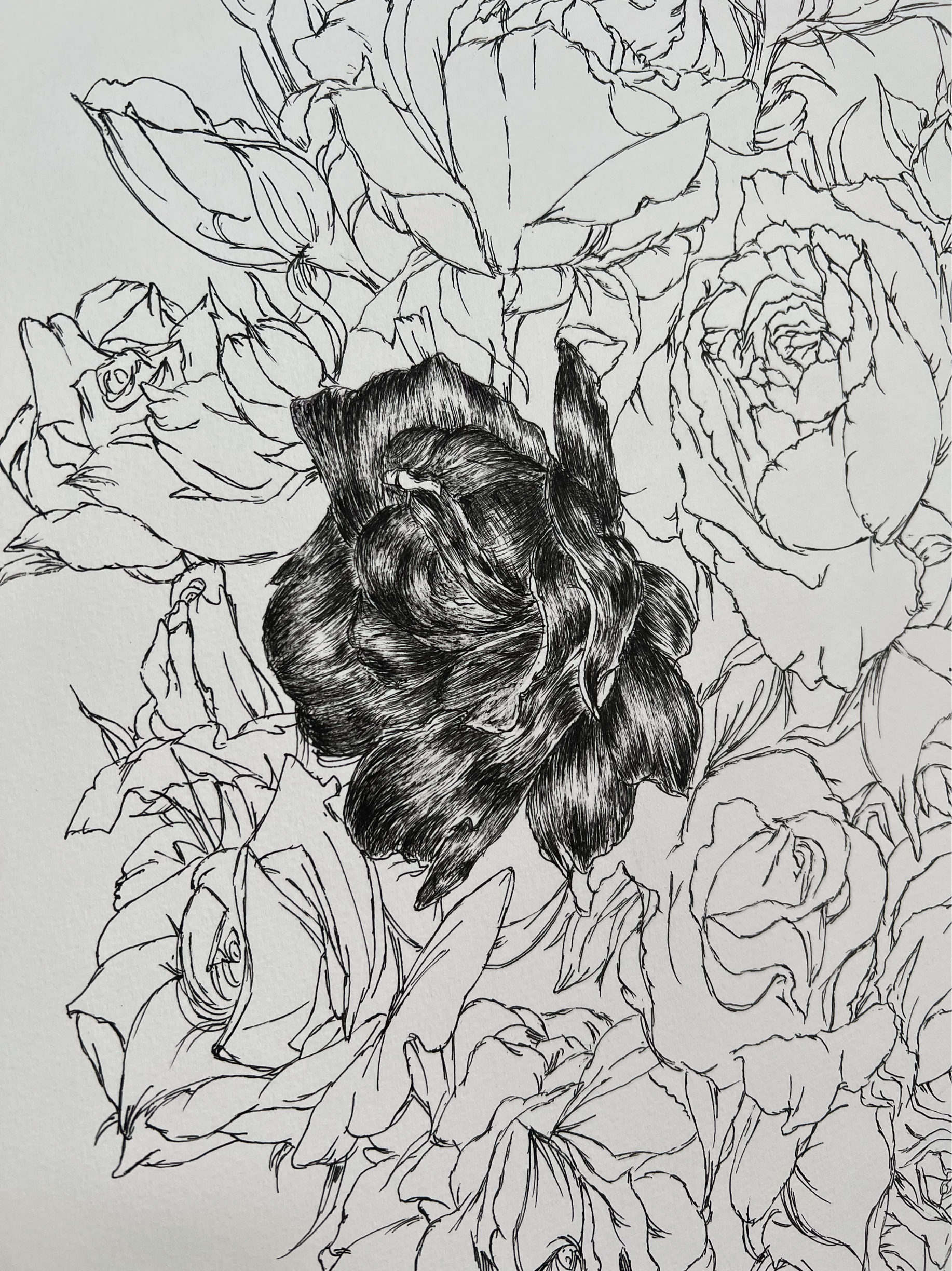 外見が違くとも置かれた環境の中で、強く咲き誇る薔薇を描きました。